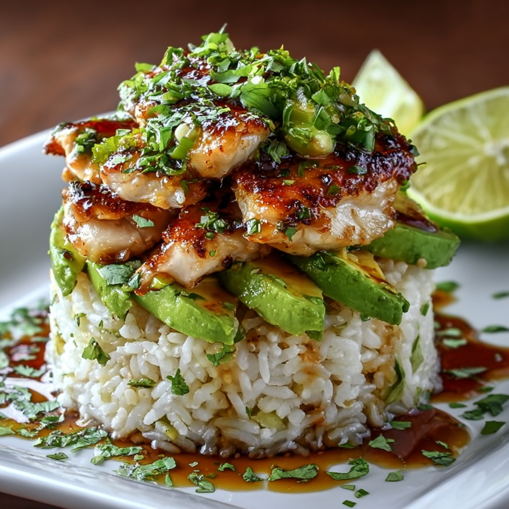 Tangy Honey Lime Chicken & Avocado Rice Stack That Delights